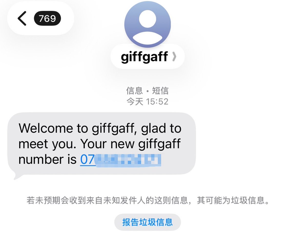 - 收不到短信/验证码时:手机设置 → 移动网络 → 选 giffgaff → 运营商 → 关闭自动 → 手动选「中国移动」→ 重启手机。大部分地区中国移动信号更好。